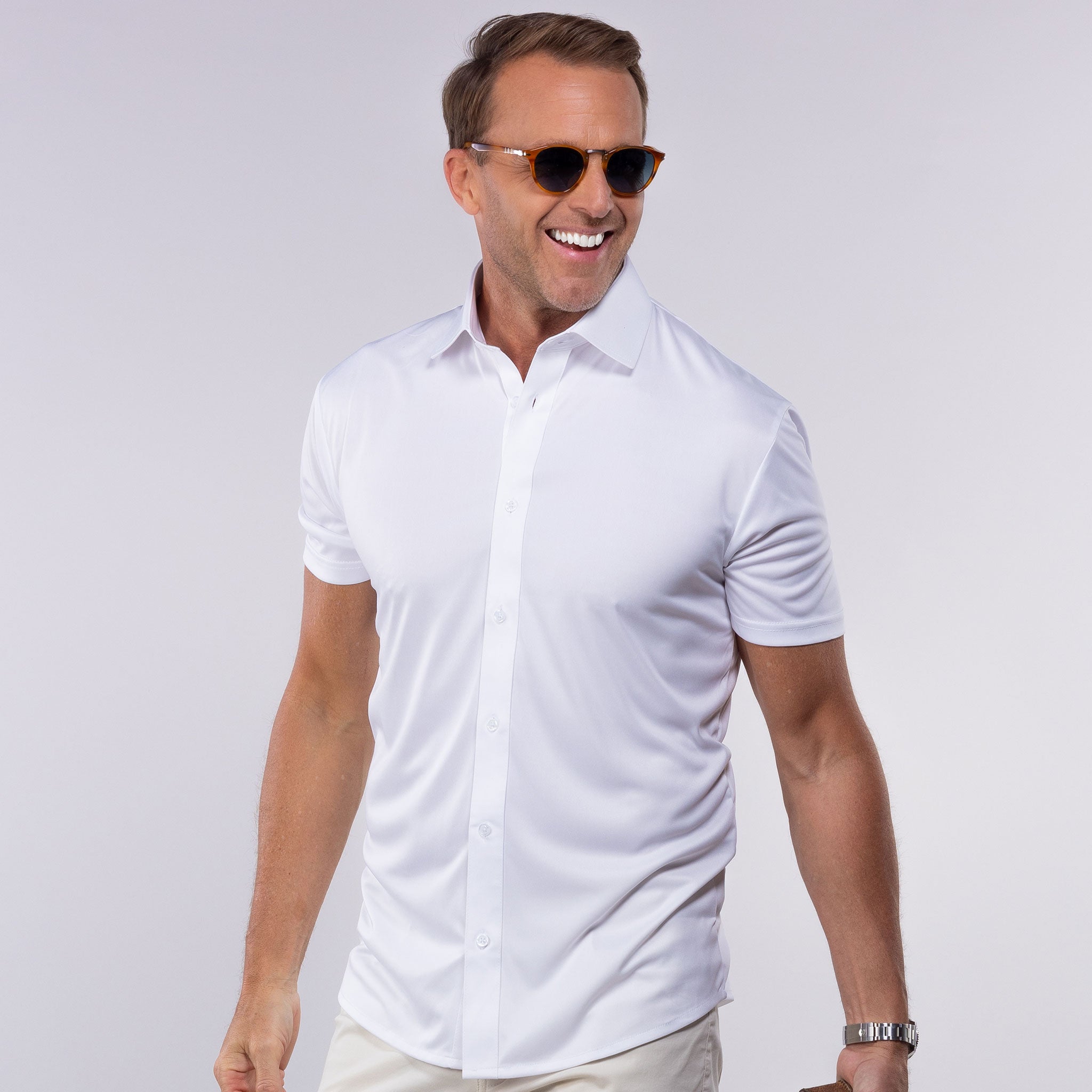 The versatile Quattro Flex Short Sleeve Button Down is everything you need in a warm weather shirt. This button down pairs our patent pending, firm, semi-spread dress collar with ultra comfortable, quattro flex fabric technology that is 4-way stretch, breathable, and wrinkle resistant.