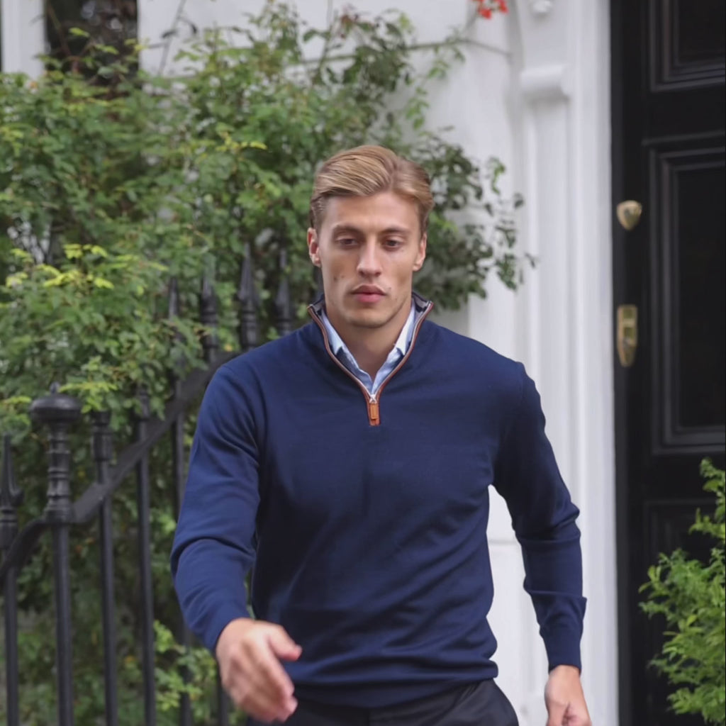 The Cashmere Touch Australian Merino Quarter Zip Sweater is the ultimate layering piece to complete any gentleman's wardrobe. Crafted with the highest quality merino wool blend, this quarter zip sweater provides ultra soft breathability with durability – simple to wash and easy to maintain. Our special merino wool blend adds a luxurious feel without comprising the strength and longevity of this must-have sweater.